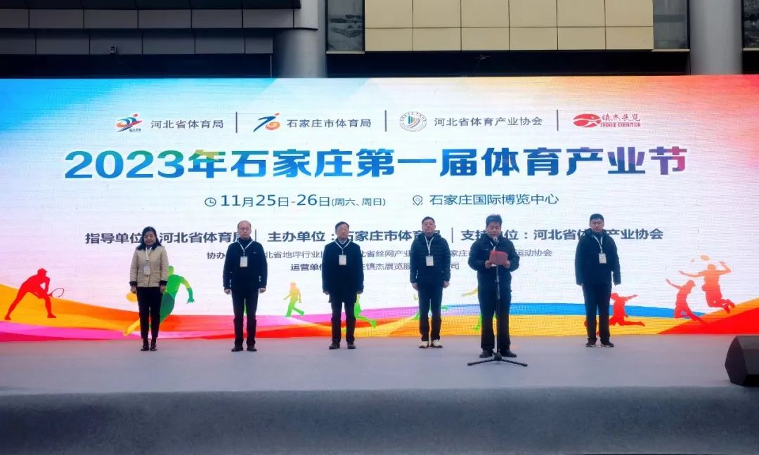 11月25日上午,2023年石家庄第一届体育产业节在石家庄国际博览中心开幕。省体育局党组成员、副局长田建功,石家庄市体育局党组书记、局长任维维出席活动。